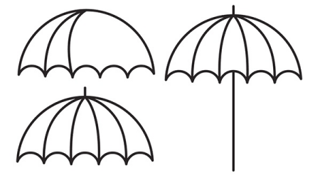 使用您选择的绘图工具,从伞顶部到伞的每个扇形点绘制四条曲线。使用线段工具,在伞顶部画一条小线,从伞底部伸出一条长线。