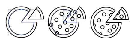 披萨图标也很简单。使用椭圆工具绘制一个大圆。使用选择工具来切换圆的半径角度,从而切出一个截面。重复第二个圆圈,但这次你只想要留下一小部分。