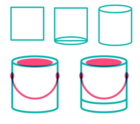 要创建一个有趣而简单的油漆桶,绘制一个正方形并在顶部nad底部添加两个椭圆(确保它们的宽度匹配)。凝聚的瓦楞盒包装盒印刷和在底部椭圆探路者面板。在油漆罐顶部画一个较小的,颜色鲜艳的椭圆。