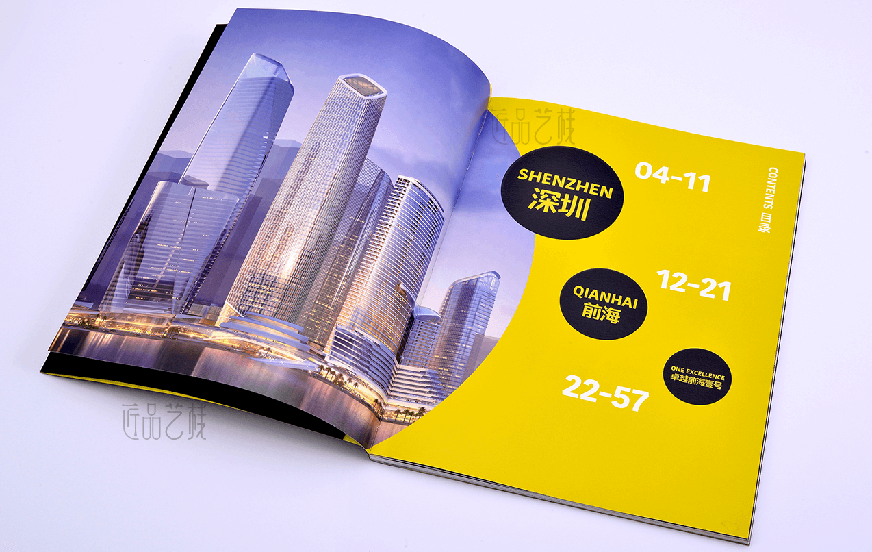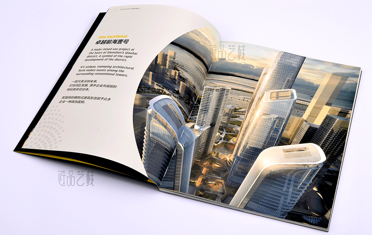 卓越前海壹号位于深圳前海的高端商业公寓及甲级写字楼,在其楼书印刷上,采用特种触感纸张与创意工艺结合为封面制作,配合进口特种纸和海德堡设备精印,打造又一本商业地产高档楼书印刷。