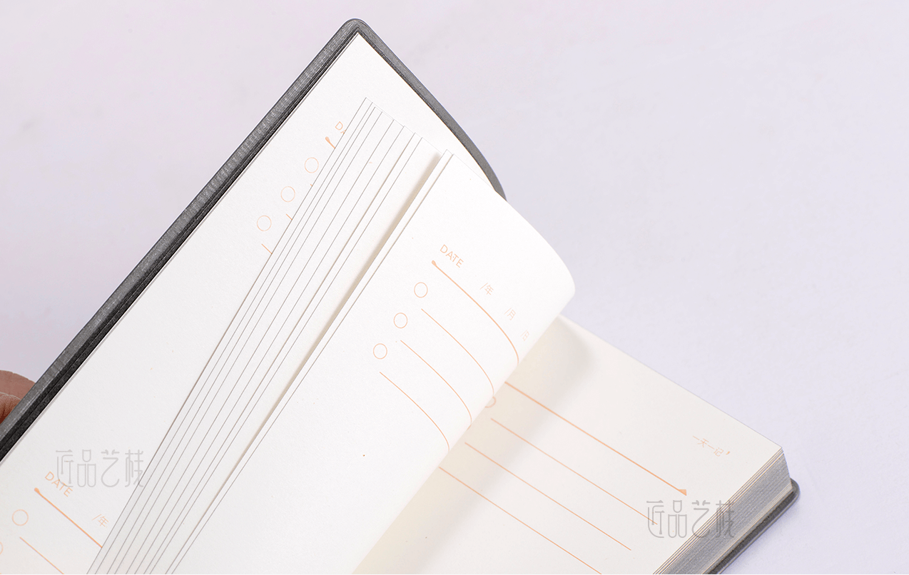 匠品艺栈文创笔记本,是由佳润隆包装印刷公司自主设计、印刷、装订定制的简约创意笔记本,精选高端皮质、笔记本专用纸张,并搭配银边滚烫的工艺精制而成,配置礼盒套装,以此起到礼品和宣传的双重作用,同时更进一步沉淀公司为客户提供文创笔记本生产定制的经验和能力。