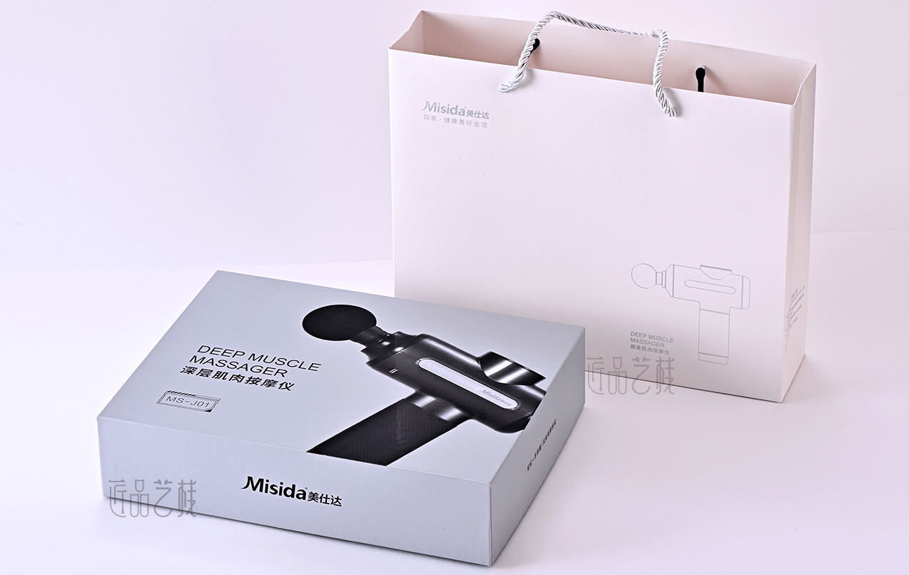深圳悦来科技有限公司主打品牌——美仕达大健康品牌,佳润隆包装印刷&匠品艺栈长期合作企业之一,在其按摩仪产品包装盒印刷定制中,我们采用硬卡纸精装的方式,海德堡五色机专银印刷,结合逆向UV等工艺,使其衬托出相应产品——深层肌肉按摩仪的厚重感和高端感,大力提升该产品在行业领域的竞争力和品牌气质。