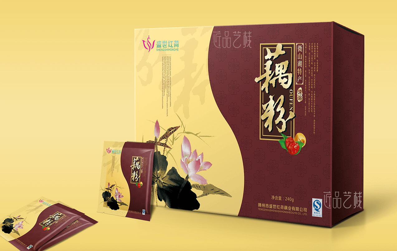 藕粉是久负盛誉的传统滋养食品,营养价值高,药疗作用也很好,且味道鲜美,盛世红荷藕粉品牌,是山东龙头企业旗下核心产品品牌,在与其包装盒设计定制中,我们根据其不同的市场与渠道定位,规划设计系列藕粉品牌产品包装盒和礼盒,以茶藕为核心贯穿元素,以传统中国风和现代的高端工艺,准确体现盛世红荷藕粉的产品品质和品牌气质。