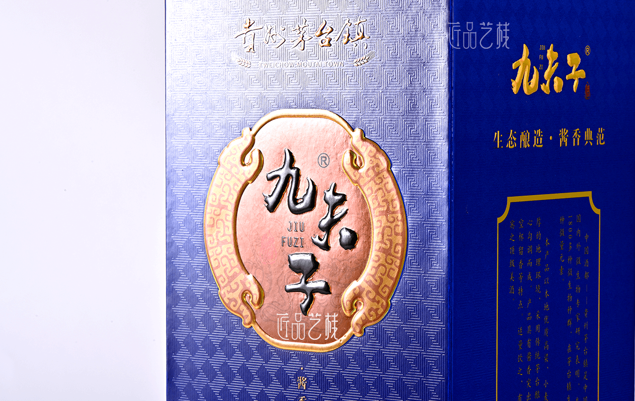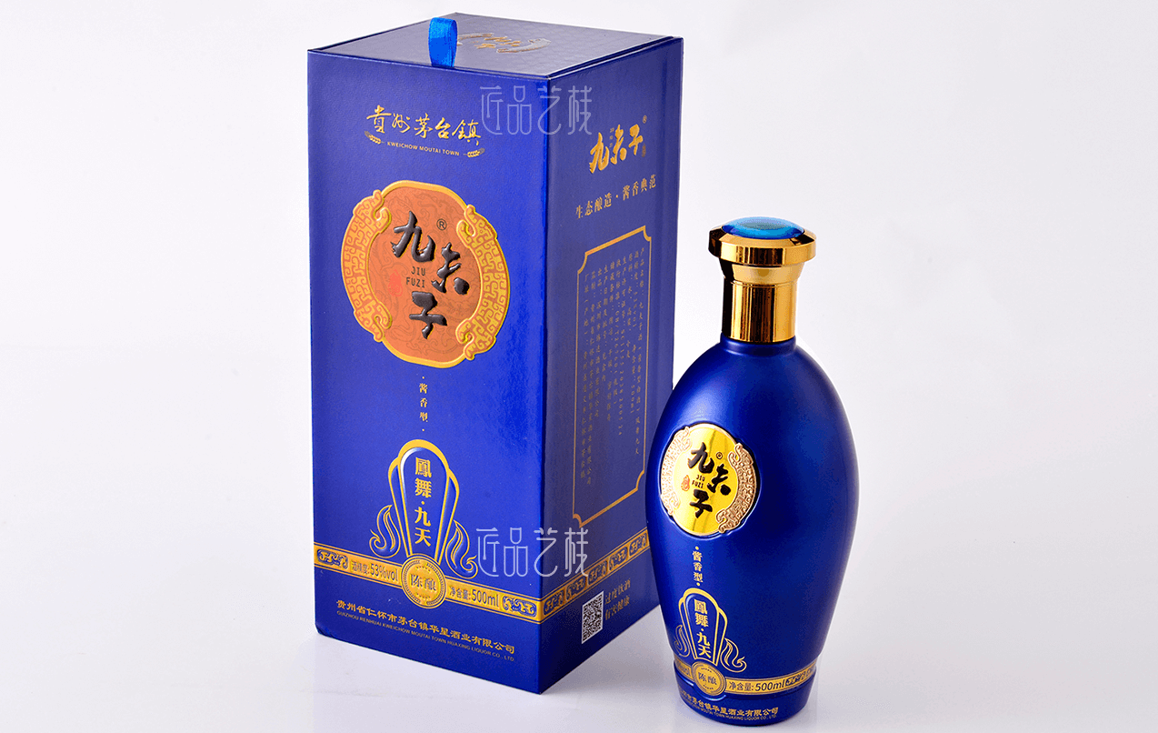 九夫子酒品牌,选用茅台镇本地优质糯高粱和小麦,取水于赤水河水,具有酱香突出、优雅细腻、空杯留香持久等独特风格。在九夫子酒品牌产品包装设计定做中,采用一言九鼎、凤舞九天、九五之尊系列分类,设计统一的品牌图标,并根据每个系列的特点和定价,设计不同包装形态、元素和色彩的包装盒和酒店,让其得到统一的品牌形象传播和溢价的同时,又节省对应的生产成本。